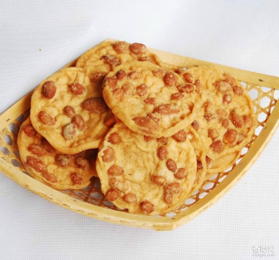 月亮花生巴是以面粉為主要原料,佐以五香調(diào)味品、燦米粉、鮮花生仁、經(jīng)加工成型后,在油鍋中煎炸而成。酥、松、脆,香氣郁雅風(fēng)味獨(dú)特,具有香脆可口、松酥宜人的特點(diǎn)是老少皆宜的傳統(tǒng)休閑食品。