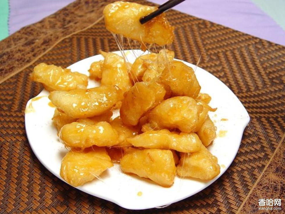 3、天冷時可用熱水坐底保溫,延長成菜后的拔絲時間。