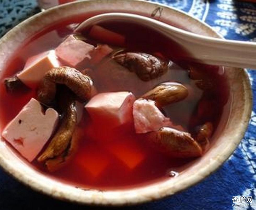 莆田紅菇湯,是莆田的一道特色美食,以莆田紅菇和豆腐烹飪而成的。紅菇是莆田的一種山野特產(chǎn),目前還無法人工種植,很珍貴,而且營養(yǎng)豐富,據(jù)《本草綱目》所載:“紅菇味清、性溫、開胃、止瀉、解毒、滋補、常服之益壽也”。
