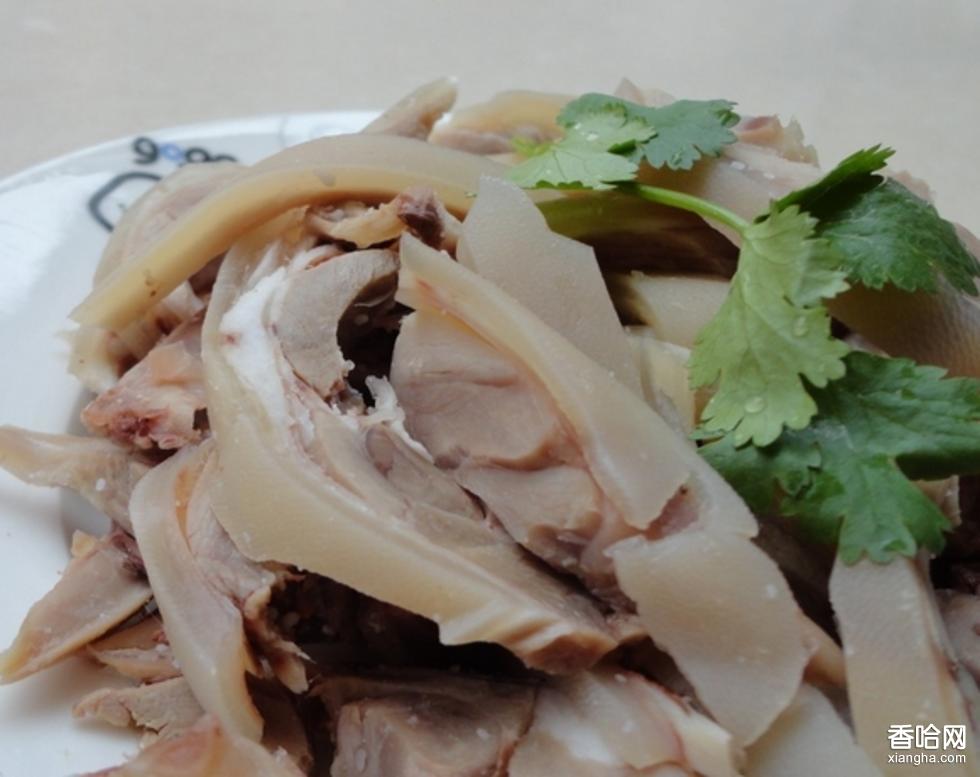選擇上好的山羊,放血宰殺,脫盡毛,卸內(nèi)臟,把整羊放入鍋中,用沸湯淋燙幾遍,迅速放入木桶中,再沖入適量開水,淹沒全羊,蓋上桶,待次日取出,按羊脖肉、羊脊肉、羊腿肉、羊雜肉四類分別切開。食用前,用鋒利的薄刃把羊肉切成薄薄的細片,裝盤上桌,佐以姜末、蒜片、老醋、醬油,味道特好,百吃不厭。