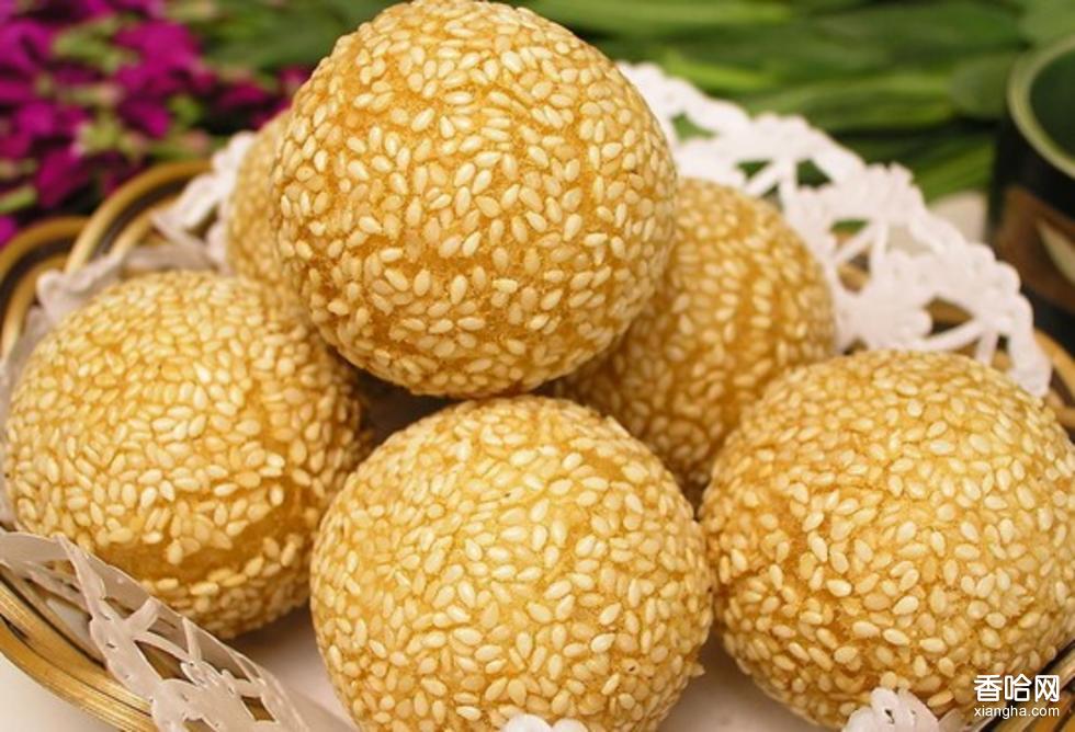 麻丸的做法跟煎粄是差不多的,只是和米團的時候里面添加了芝麻,做成一個個小丸子,再在丸子外面粘一層芝麻,下油鍋煎炸成的約有半個拳頭般大小的粄子,個頭比我們那邊墟上賣的煎粄、薯包都大多了。因為它的火頭炸得不老,火頭炸老了則會變得很硬,甚至是酥脆的了,炸熟了即起鍋,所以非常非常的軟。大家都把它的名字叫作麻丸,賣五角錢一個。因為是糖水和拌成的,所以味道很甜,又因為外面還有一層芝麻,所以又有芝麻的濃香,個頭圓圓的大大的,咬上去卻軟綿綿的,一口咬下去,原本圓圓的鼓鼓的豐滿的麻丸,也跟著牙齒的合緊而變得扁扁的了,糯米的彈性和韌性在這里顯現(xiàn)得非常好,又甜又香又軟又韌卻毫不膩人,食之滋味一流,只是吃得多了會上火就是。