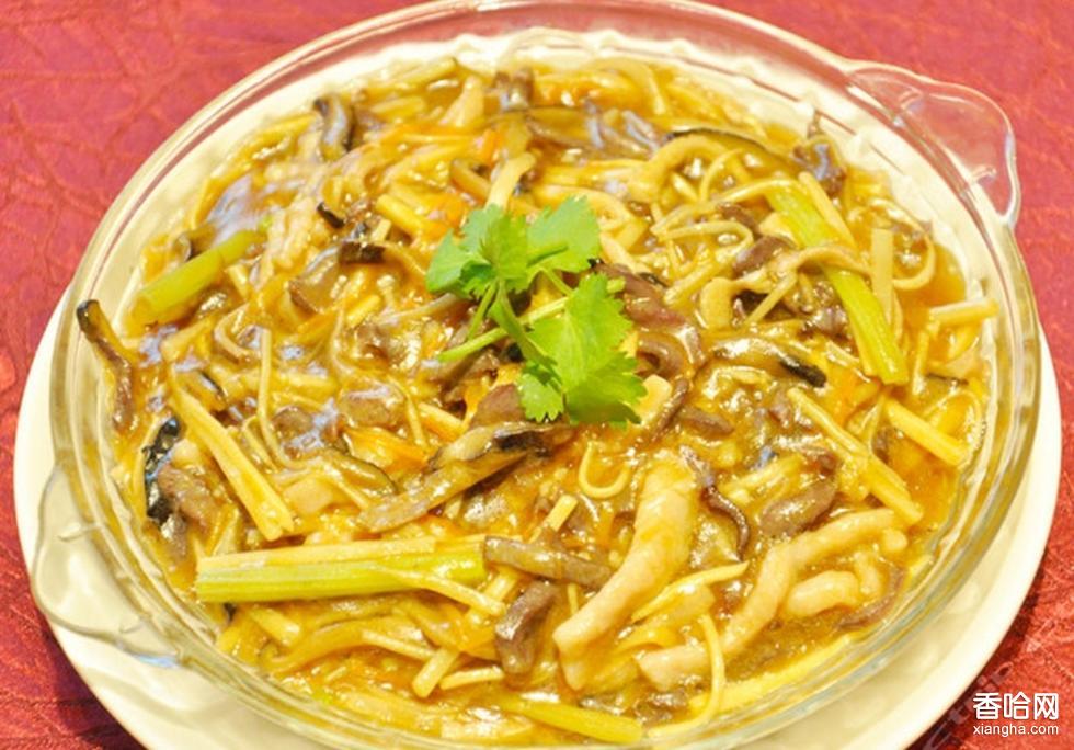 八王爺只好作罷,但心中總是不痛快,雖然吃遍江南美食,仍感無味。這可急壞了曾國藩,想盡辦法讓八王爺開心。此時,恰逢曾國藩家廚子來了延平遠房親戚,并帶來了筍、香菇、粉絲等閩北特產(chǎn),廚子靈機一動,就利用他們帶去的閩北特產(chǎn)筍、香菇、粉絲,加上肉絲及佐料,炒了一盤菜肴給八王爺品嘗。