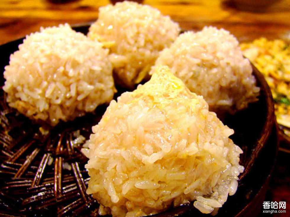 做法:1.在冬天把糯米飯放在寒冷的地方凍實后,撥散開,用手將飯粒逐個壓平,曬干,用時水泡回軟,瀝干水分即成凍米;2.將豬肉洗凈剁成肉餡;3.蔥洗凈切成細末;4.荸薺去殼,洗凈,用刀拍破,改刀切成細末;5.海米加料酒、蔥姜上屜蒸一下,晾涼切成細末,(揀去蔥、姜雜物);6.熟火腿切成細末;7.把肉餡放入盤中,放入荸薺末、海米末、味精、料酒、胡椒粉、精鹽、用筷子攪勻,邊攪邊打入適量水,攪好后,再擠成小丸子;8.將小丸子放入凍米碗中,使丸子表面均勻的粘上凍米;9.粘上凍米的小丸子再放在一個盤子中,上籠蒸20分鐘,取出時撒上火腿末即成。特色:凍米松軟,肉丸鮮嫩,沾白間紅,十分美觀。
