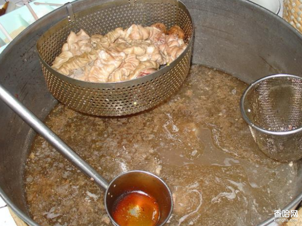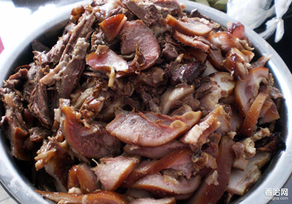 制作時(shí),先用細(xì)鹽輕搓幾遍,然后放入原湯鍋中,煮兩小時(shí)左右,煮時(shí)放入用紗袋包好的豆蔻、砂仁、肉桂、八角、茴香等佐料。煮熟的肉撈出,放在鍋內(nèi)箅子上,加糖熏烤即成。