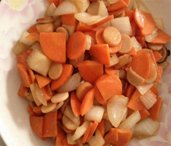 6、在加入洋蔥和胡蘿卜,翻炒片刻;