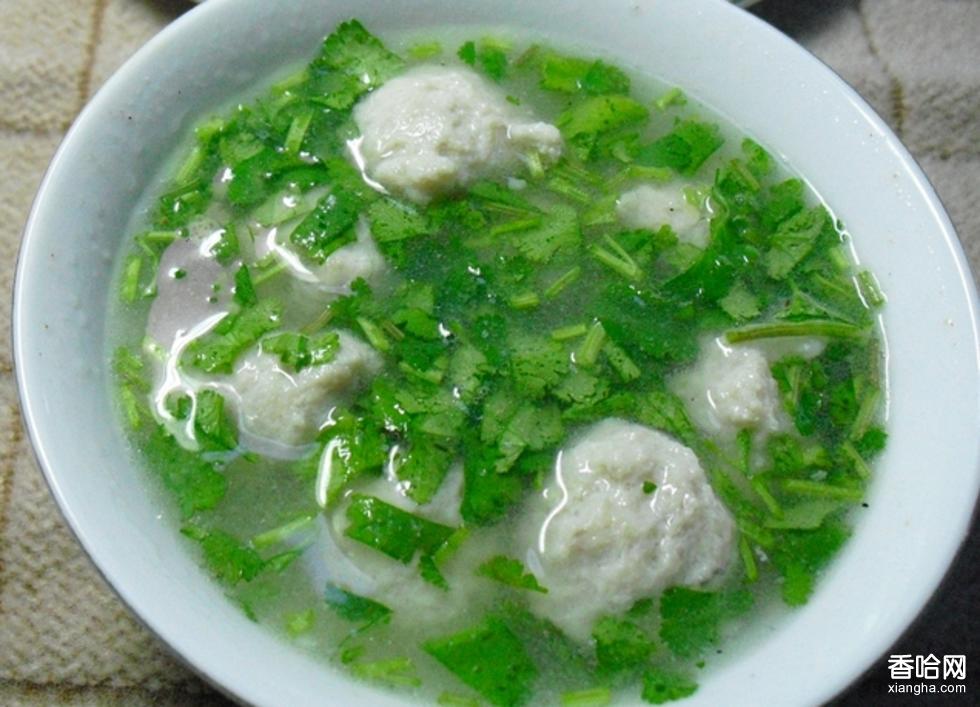 酸辣魚丸,是青島的特色菜肴之一,魚丸一般用新鮮牙魚肉制成,配以酸辣農(nóng)湯,既保證了原湯的清香,又保持了魚丸本身的鮮味。魚丸有彈性,鮮味濃厚,湯酸辣開胃,口感極佳。