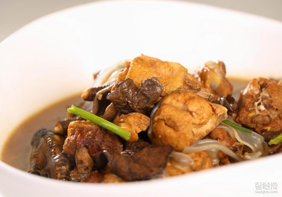 主料:小公雞400克。配料:嶗山菇、粉皮。