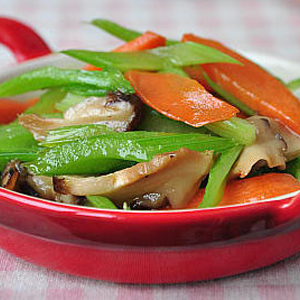 2、鍋燒熱倒少許油,下胡蘿卜碎炒香,加鹽和生抽調(diào)味,最后加芹菜丁翻炒一分鐘即可。