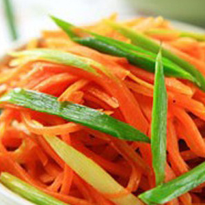 準(zhǔn)備材料:胡蘿卜300克、肥瘦肉100克、酸咸菜60克、蒜苗20克、生姜5克、鹽少許