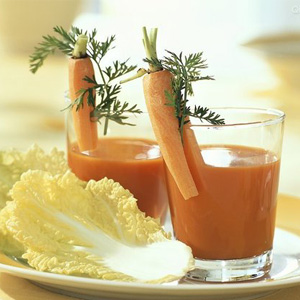 胡蘿卜能提供豐富的維A,而蘋果中的維生素C是心血管的保護(hù)神,膠質(zhì)和礦物質(zhì)可以降低膽固醇,特有的香氣可以緩解壓力過(guò)大造成的不良情緒,還有提神醒腦之功。蘋果可以養(yǎng)顏除斑,使肌膚潤(rùn)澤有彈性。這種果汁富含胡蘿卜素、檸檬酸、蘋果酸、鈣、鐵、果膠,尤其是身體容易疲勞的人,更應(yīng)經(jīng)常飲用。