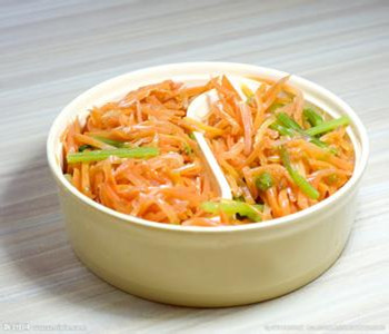 胡蘿卜富含蔗糖、葡萄糖、淀粉、胡蘿卜素以及鉀、 鈣、磷等,能為人體提供豐富的維生素A,而且低熱量,是減肥一族的理想美味。胡蘿卜熟吃更易于營養(yǎng)成分的吸收,炒胡蘿卜絲是常見的烹飪做法。下面為大家介紹幾種炒胡蘿卜絲的做法。