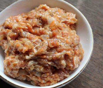 將胡蘿卜擦絲剁爛,加肉末、鹽、油、味精、少量香菜,和成餡,做成小餃子或小包子。