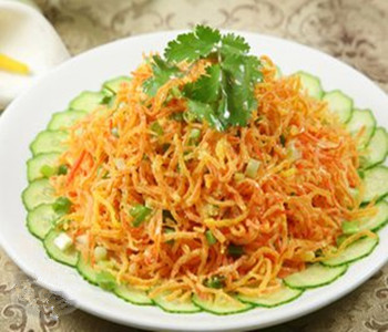 1、將胡蘿卜洗凈去皮、并切絲備用