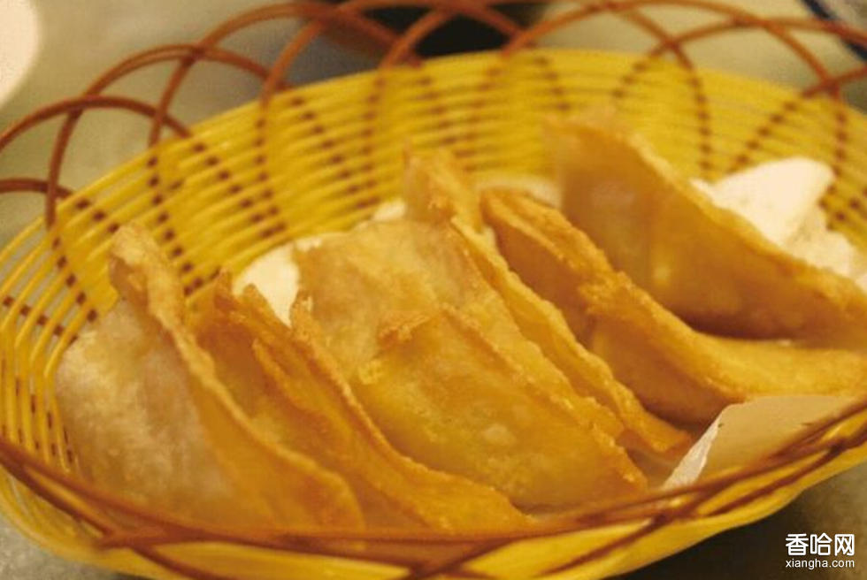 制餃皮:米粉在鍋中煮熟,加水炒至米粉達60°C時,至熟出鍋,放案上晾涼,揉透,將劑揉成圓形,用刀壓扁成面皮。制餡:豬肉末、豆腐茸,加調(diào)料拌勻。烹制:面皮包餡心,用菜油炸至呈金黃色,出鍋即成。