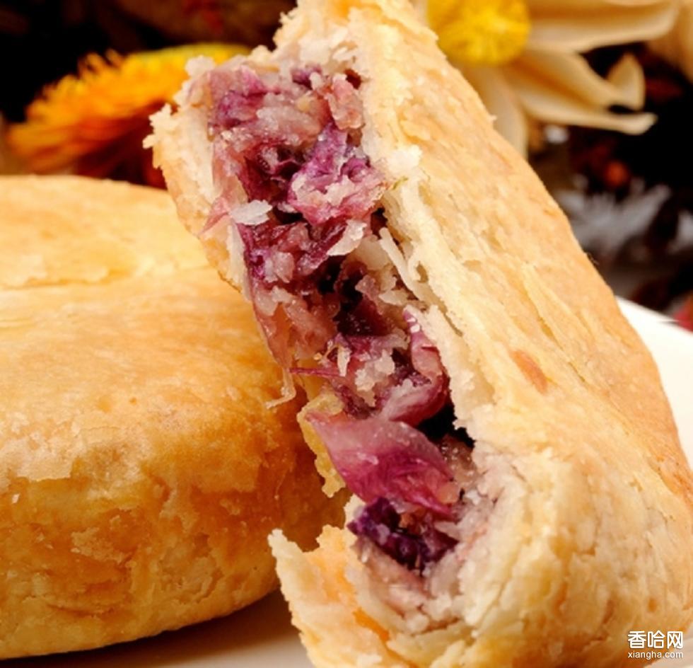 1.將面粉倒入面盆,先加入適量開水燙成雪花狀,再逐漸加入冷水揉至起勁而有拉力時(shí),將面拉成長(zhǎng)條,包入面酥再次揉均勻后,摘成若干個(gè)面劑放好。面酥是面粉中摻生油(或豬油)反復(fù)搓勻即成。2.將黑棗蒸爛,去皮核壓成泥,用豬油加白糖炒干稠,即成棗泥餡。3.將摘好的面劑一個(gè)個(gè)壓成皮子,用每個(gè)皮子包入適量棗泥餡,再搟成直徑3厘米左右的生圓餅。4.將平底鍋放火上,先抹上一層水,再放上生圓餅,反復(fù)轉(zhuǎn)翻,每翻一次,抹一次麻油,約15分鐘即成。