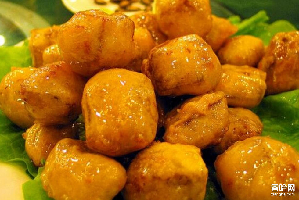 配料:芋頭500克,芝麻10克,白糖200克,熟豬油或清油750克(實(shí)耗100克)。