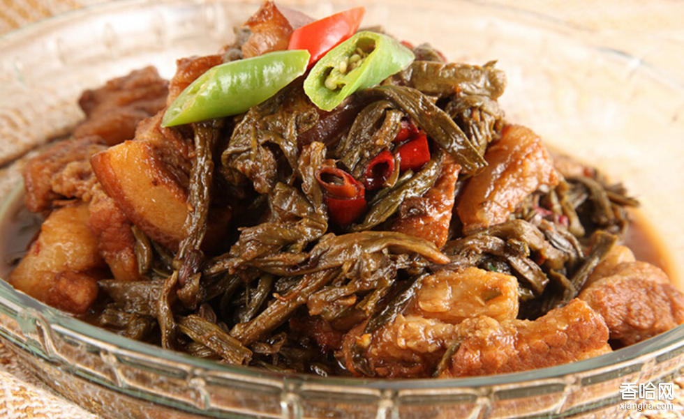 主料:帶皮五花肉,干豆角。調(diào)料:姜,紅椒,八角,紹酒,醬油,糖,鹽。