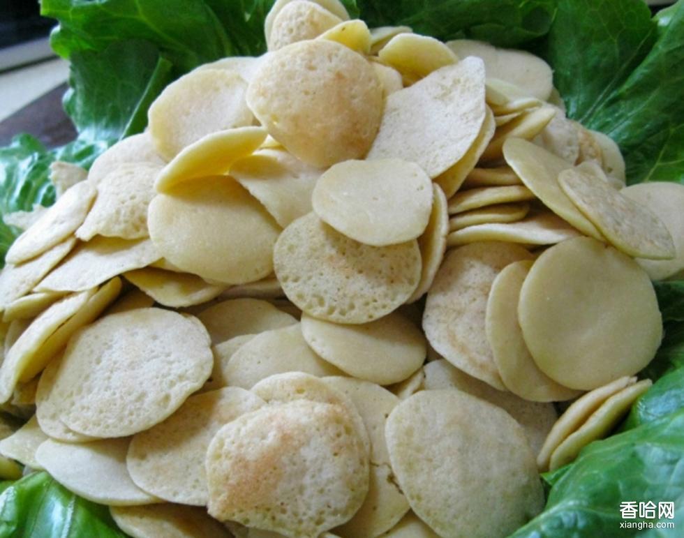 將綠豆粉、面粉加水和成水粉漿,下平鍋中攤(烙)成似銅錢狀大小的餅片??沙础⒄?、燴、掛箱等,當?shù)赜熊洺炊癸?、香炸豆餅、怪味豆餅、掛箱豆餅,是入饌佳品?/p> [!--empirenews.page--]