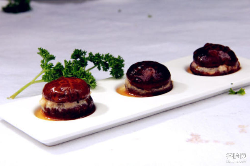 1、將豬瘦肉剁成泥,放碗中,加火腿末、蔥花、1/2湯匙醬油、鹽、白糖、味精、適量生粉和熟豬油,打入雞蛋,拌勻成肉餡;2、香菇洗凈,用上湯煮滾調(diào)味后撈出攤平,菇面向下,用砧板壓平(泡香菇水去沉渣留用)。取其中18個,菇面向下擺在案板上,灑上適量生粉,每個菇上放一份餡心,用余下18個香菇一一蓋起來,即成香菇盒生坯,整齊地擺在碟內(nèi),放鍋中蒸10分鐘左右;3、燒熱鍋,加入雞湯、香菇水、醬油、鹽和味精煮滾,用生粉水勾芡,淋上香油,澆在香菇盒上即可。
