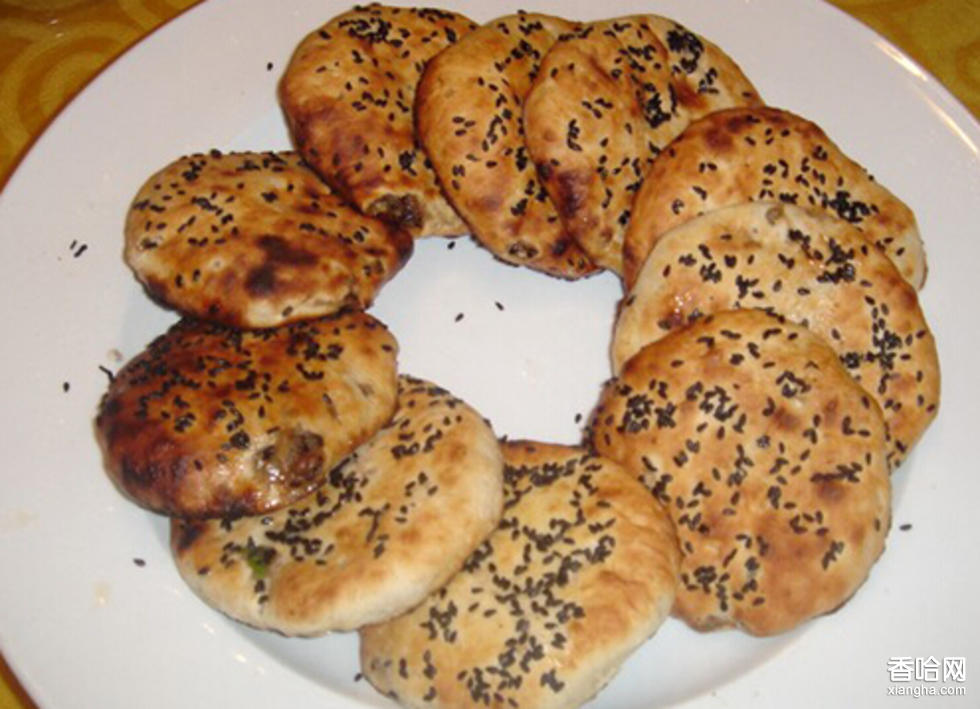 5、用炭火燒烤3—4分鐘,待餅面金黃,香味溢出時(shí),用特制鐵鉗鉗出即成。