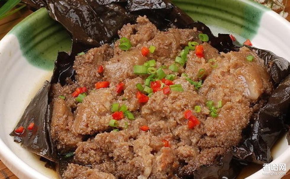 片肉的規(guī)格,長二寸五,寬一寸三,厚一分,為防蒸熟后變形,還需用刀背上在肉上橫批二三刀。拌料主要有蝦米末浸泡的紅方腐乳鹵、白糖、硝水、曲酒、潭粉蒸肉粉等。