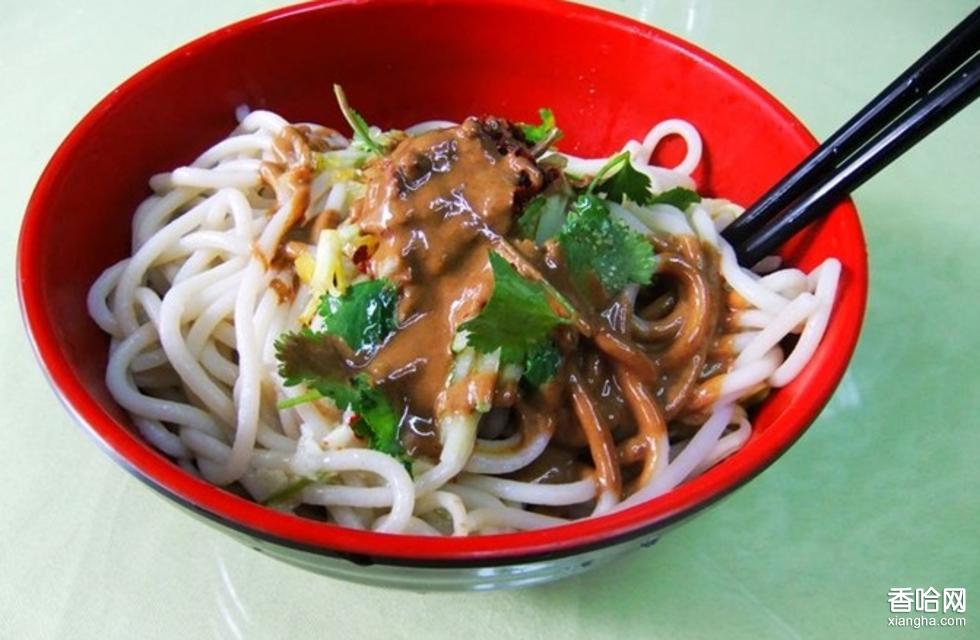 格拉條要是吃得很秀氣,可就不大合適了,經(jīng)典的吃相是這樣的——先把盆子里的種種物什三下兩下拌勻,夾起一筷子格拉條把格拉條的頭兒放進(jìn)嘴巴里,不歇?dú)獾爻愿蓛簦缓竽ㄗ?,擦擦腦門上辣出的汗,那個(gè)過(guò)癮呀!再將鹵湯或者雞蛋湯一口氣喝完,那就OK了。這樣先前急吼吼地吃進(jìn)去,在肚子里似乎有點(diǎn)倔頭倔腦的彼此之間不是很伏貼的格拉條,用著雞蛋湯一調(diào)和,就會(huì)感到胃部異常舒服,進(jìn)而五體通透了。