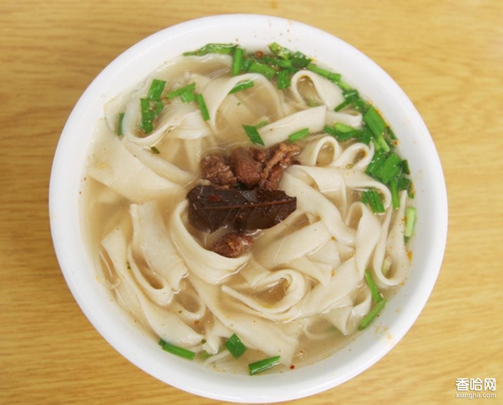 精選成年優(yōu)良黃牛,宰殺、扒皮、破膛、去骨,而后分成四大塊,漂洗干凈,放入大鍋中加上水烀熟,撈出冷涼后把烀熟的牛肉切成小薄片,放入熱湯中燙熱和燙好的粉絲一同放入碗中,加上熱湯即成成品。