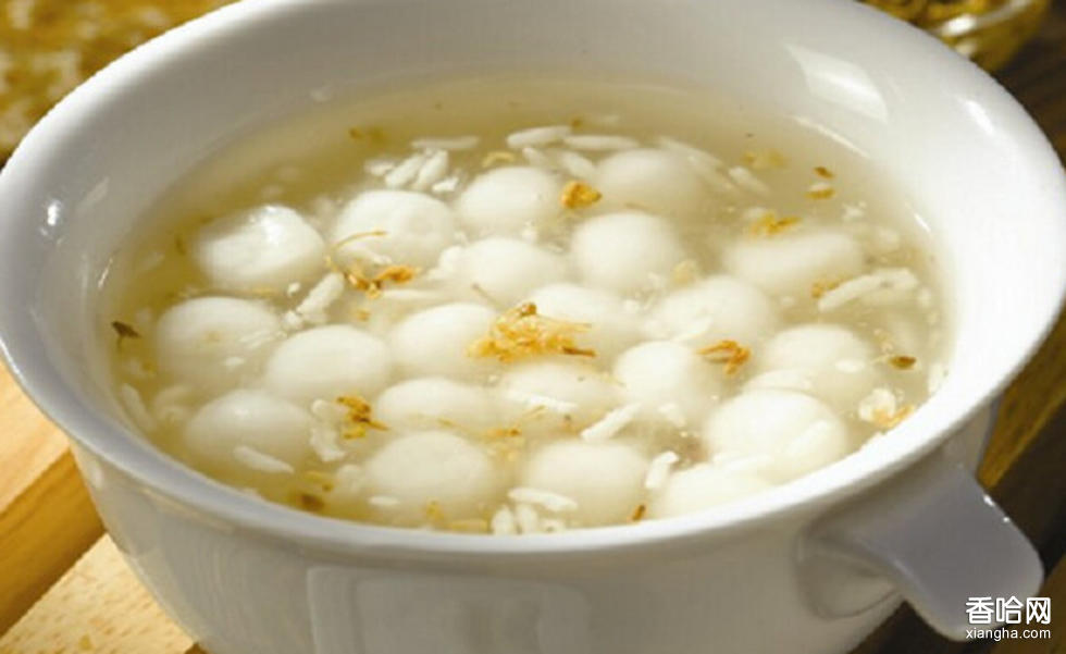 主要作料為糯米、黑芝麻、豬油、白糖、桂花等。采用吊漿技法,將糯米制成不干不粘的水磨粉;再將黑芝麻熟研末,加入豬板油丁、白糖等拌成餡心;以水磨粉為皮坯,包入餡心搓圓,置沸水鍋內(nèi)煮熟后,撒上少量白糖、桂花和紅綠絲即成。特點(diǎn)是,色白發(fā)光,糯而不粘,皮滑餡潤(rùn),滋味香甜。