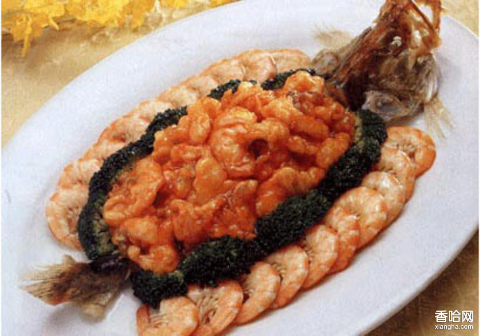鱖魚 750克, 青蝦 350克, 豬肋條肉(五花肉) 50克, 雞蛋清 75克,