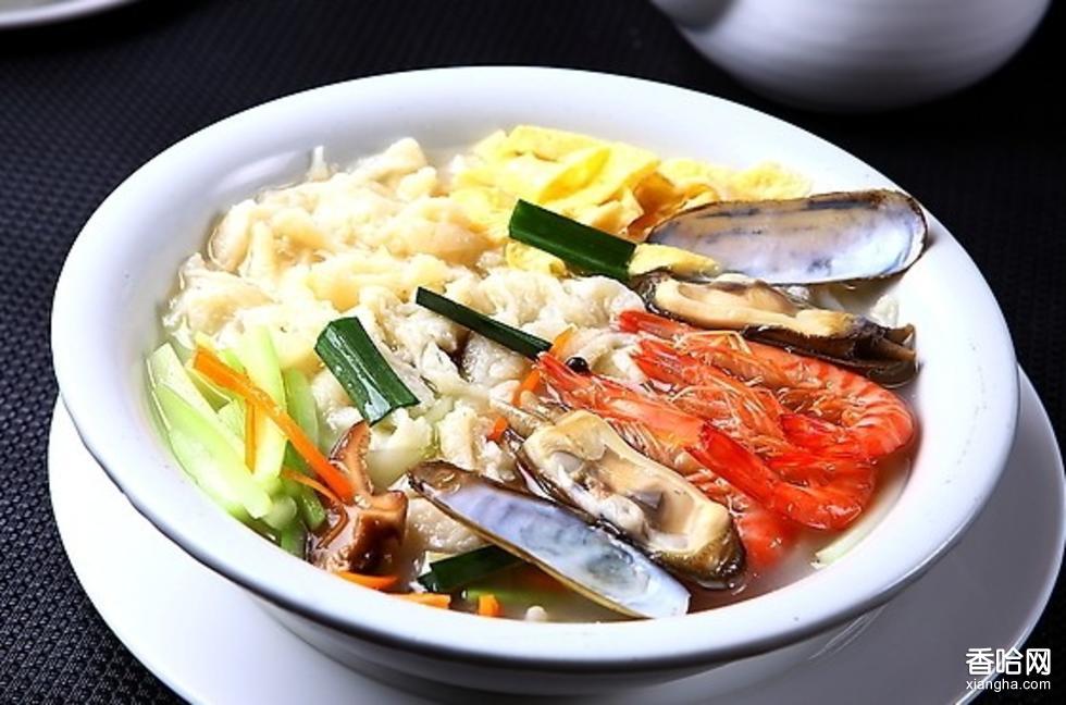 一斤面粉、一只雞蛋、一匙菜油、一匙鹽,加適量水,放入大碗內(nèi)調(diào)成面粉糊漿備用。旺火起油鍋,放入白蘿卜絲炒,再放入鹵牛肉絲、香菇、黃酒,爾后加入高湯,猛火燒開,用菜刀沿大碗口將面粉糊漿切成一條條面狀下鍋,大火燒開放入適量鹽(亦可再加蝦、蟶、蛤蜊、油煎蛋等),燒熟后加少許醬油、味精、蔥或大蒜葉,起鍋盛入碗中。