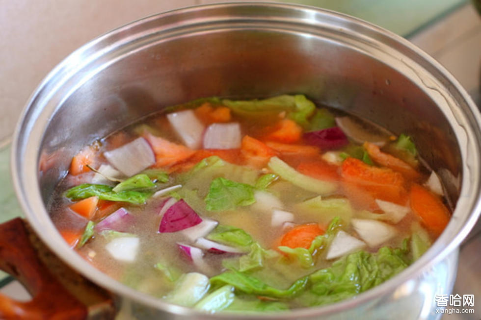 蘇波湯(俄語(yǔ)蘇波意為湯),由新鮮的卷心菜、土豆、西紅柿、香蘇葉,配牛肉或牛骨煮制而成,其味鮮美,營(yíng)養(yǎng)豐富。