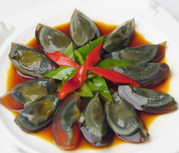 清代名醫(yī)王士雄在《隨息居飲食譜》中記載:“皮蛋,能瀉熱,去大腸火,治瀉痢,能散能斂?!敝嗅t(yī)認為:皮蛋性涼,有滋陰潤燥、潤腸順氣、清熱止渴的作用??删徑饪诟缮嘣?、咽喉腫痛、目赤耳鳴、鼻腔熱烘、便秘、口腔潰瘍、牙齦腫痛等“上火”癥狀。