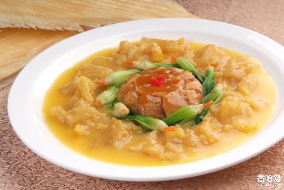 蟹黃魚肚,是一道江蘇名菜,蟹黃味鮮,色黃亮,魚肚軟滑,湯汁濃郁。魚肚是名貴干貨原料之一。中國(guó)吃魚肚,史書多有記載,如《齊民要術(shù)》上的作法,宋人陳世崇的《隨隱漫錄),明《本草綱目》等多有記載。中醫(yī)認(rèn)為魚肚甘咸性滑,人肝、腎二經(jīng),具有清頭目、養(yǎng)精固氣等功效。