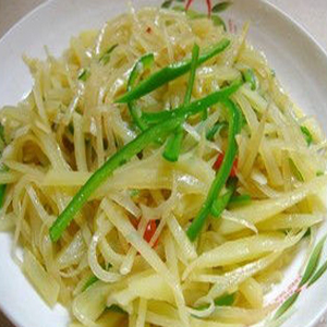 1、炸土豆時注意熱油濺飛燙傷,土豆絲炸至微黃即可,勿炸焦了。