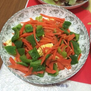 主料:青椒1個(gè)、胡蘿卜1根、雞蛋3個(gè)