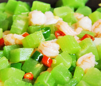 材料:萵筍、蝦仁、辣椒、料酒、姜蒜、淀粉