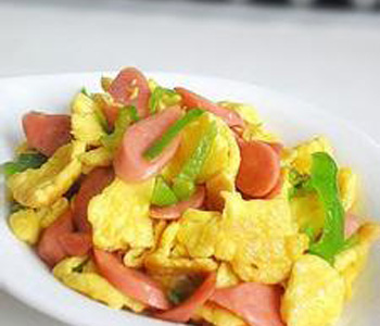 主料:青椒150g、雞蛋2個、火腿腸100g