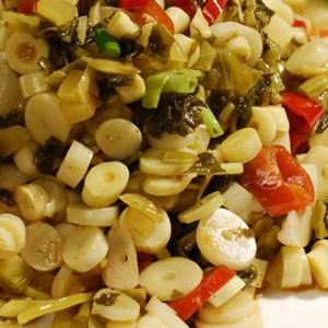 4、因?yàn)榍宄慈n筍片主料是萵筍,而萵筍中的某種物質(zhì)對視神經(jīng)有刺激作用,因此有眼疾特別是夜盲癥的人不宜多食。