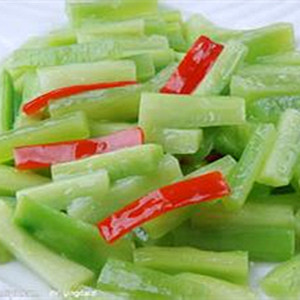 但是注意焯萵苣時(shí)一定要注意時(shí)間和溫度,焯的時(shí)間過長、溫度過高會(huì)使萵苣綿軟,失去清脆口感;萵筍本身怕咸,所以鹽要少放才好吃。