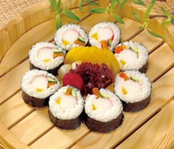 紫菜包飯是一道十分常見的韓式料理,與日本料理中的壽司十分相似。紫菜包飯其實是由日本壽司演變過來的。而日本壽司,大約在西元三世紀(jì)由中國沿海地方傳至日本,原先只是以鹽腌制的咸魚,后來改為以米飯腌魚,制成后將魚與米飯一起食用,這即是現(xiàn)今壽司料理的前身。雖然壽司最早來自中國,但在千馀年發(fā)展之后,卻成為日本文化的代表之一。