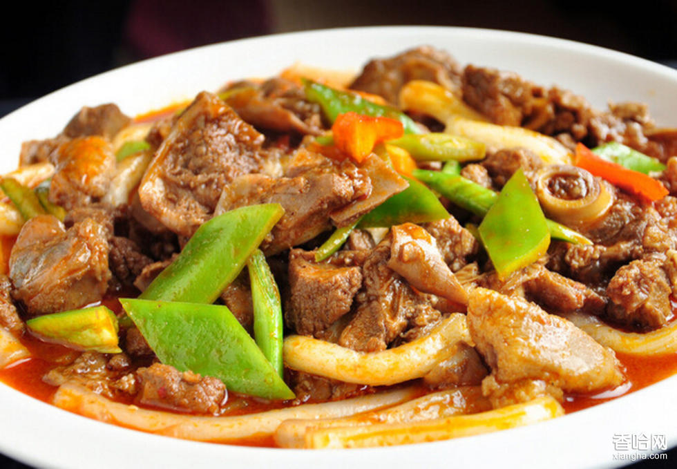 粉湯餃子,俗名“皮條拉石頭”。餃子餡可用豬肉或羊肉,配以白菜、蘿卜和各種佐料,采用傳統(tǒng)方法包成餃子。再選粉質(zhì)豐盈的扁豆,制成粉坨。這種粉坨放在鍋里有彈性,略透明,久滾不糊。烹調(diào)時(shí),先在翻滾的湯鍋里放入切成條狀的粉坨,將另一鍋里煮好的餃子和粉條,一齊倒入湯鍋中,臨出鍋時(shí),調(diào)放食鹽、生蔥、醋、油潑辣面子、味精等。其味酸辣可口,有發(fā)熱去寒之效,頗適寒冷地區(qū)人們食用,成為阿拉善的傳統(tǒng)風(fēng)味之一。