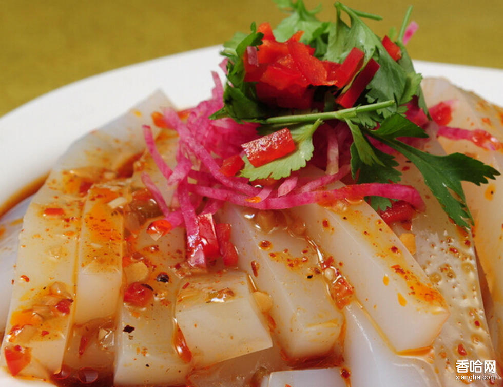 沙米涼粉,系民勤縣傳統(tǒng)純天然無(wú)污染美食珍品,選用騰格里沙漠和巴丹吉林沙漠野生沙米為原料,浸水6—8小時(shí),用太陽(yáng)射線消過(guò)毒的麥秸揉搓粉碎,置瓷器內(nèi)揉搓取汁三次,然后用草木文火加熱成漿,盛于瓷器中冷卻,至清秀晶亮?xí)r翻轉(zhuǎn)倒取,或攤涼于案上制成粉皮。食用時(shí),切成條狀,配以蔥、蒜、鹽、辣椒、芝麻、民勤陳醋,芳香撲鼻,令人口舌生津。