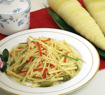 竹筍不僅味道鮮美,還有很高的營養(yǎng)價(jià)值,其中含豐富的蛋白質(zhì)、氨基酸、脂肪、鈣、鐵、磷、胡蘿卜素、維生素等多種營養(yǎng)素,維生素和胡蘿卜素含量比白菜高出一倍多,并含有人體必需的賴氨酸、色氨酸、蘇氨酸、苯丙氨酸、谷氨酸等,對(duì)人體有著很好的保健作用。