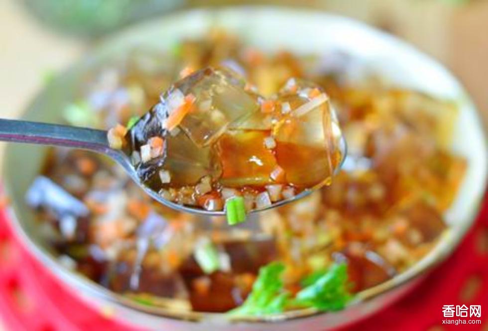 海涼粉,是大連的一種特色美食,原料是生長(zhǎng)在海底礁石上的一種水草叫牛毛菜,將它曬干后上鍋熬7—8小時(shí),再過濾、晾涼后切成條形便成海涼粉。