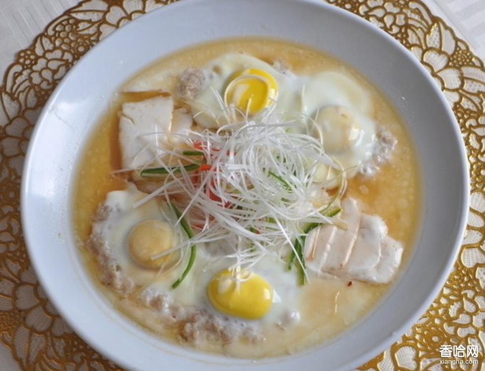 (2)將壇放在猛火上,待肉湯煮開后,以文火燒燜,1小時(shí)后再以小火燒燉,如此反復(fù)4至5小時(shí),直至壇口碗內(nèi)的小米成粥狀即成。