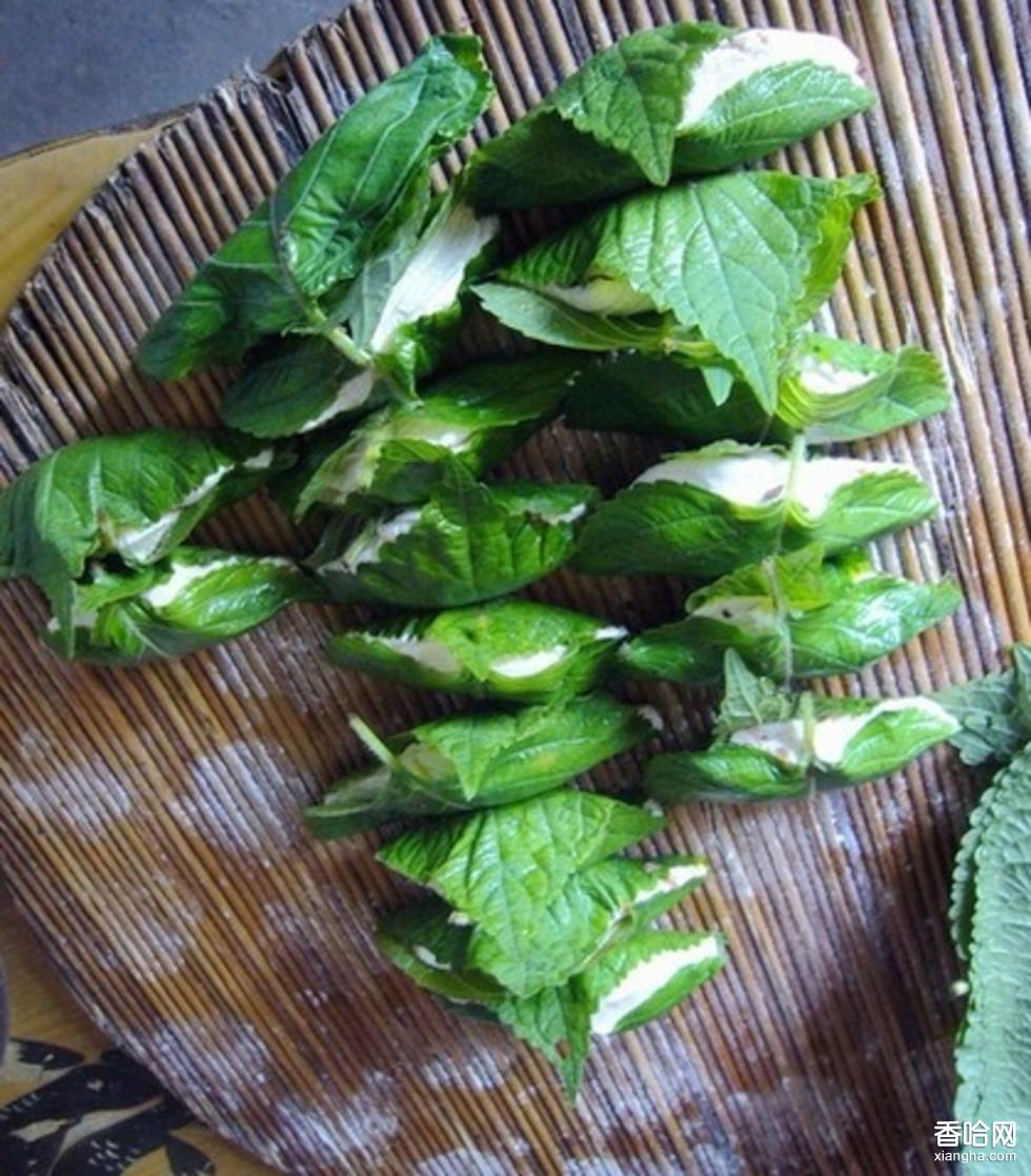 將糯米用水浸泡后磨成糯米面,紅豆也要用水泡上一宿,在大鍋里煮爛,加糖,制成紅豆沙。等到要包蘇耗子的那天,提前大約5小時,就得將糯米面和成柔軟的面團放在盆里發(fā)著,再將蘇葉一片片洗凈、陰干。待一切準備就續(xù),將蘇葉的正面滴一點豆油,與另一片葉子合在一處互相磨擦,使兩片葉子都能沾上油,用這種方法多抹幾片葉子,再將發(fā)好的糯米面往抹完油的蘇葉上攤勻,然后加豆沙餡包好,上鍋蒸10到15分鐘即可出鍋,稍涼后即可食用。