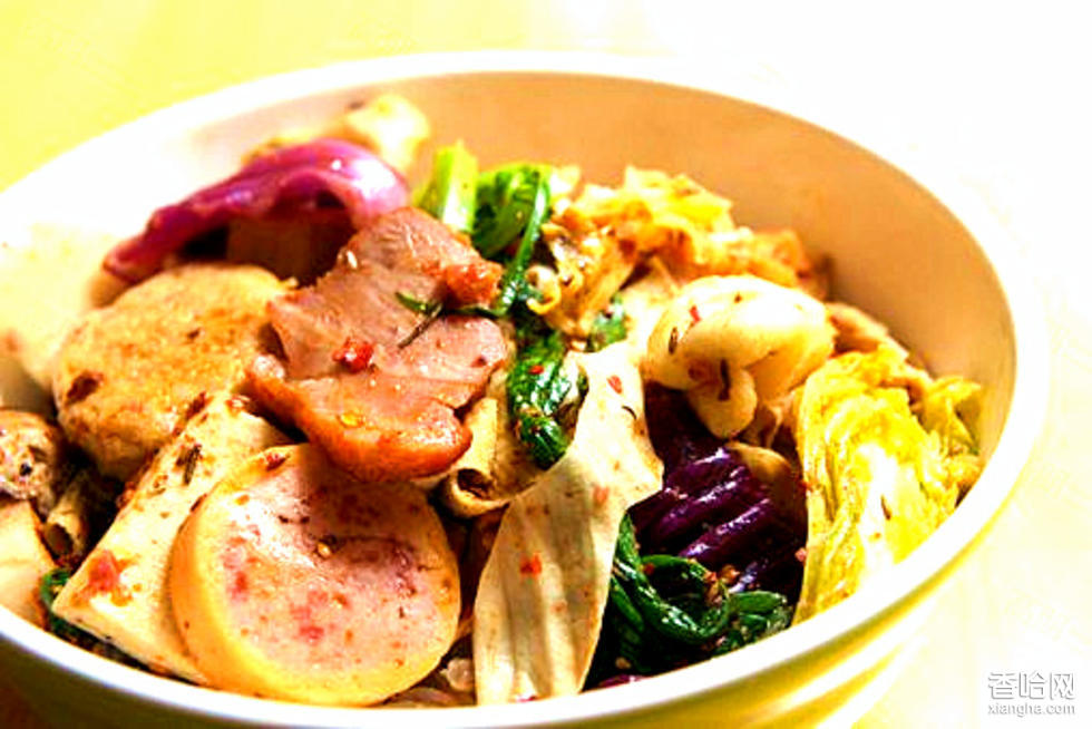 麻辣拌,是遼寧省撫順的特色美食,主要油土豆、海帶結(jié)、豆皮、丸子、魚丸、甘藍、寬粉、茼蒿、白菜、悶子、豆泡、蟹棒、蘑菇、素丸子(又稱紅丸子)等原料組成,和麻辣燙原料相似,不過是在煮過后瀝干水分,加鹽,陳醋,糖,花生碎,辣椒,孜然,麻油等拌勻后食用, 是撫順人在引入麻辣燙的基礎(chǔ)上發(fā)明的,非常受歡迎,有甜酸口味、麻辣口味、咸辣口味等等,而且口味可以根據(jù)個人喜好來進行調(diào)配,還有九葉粉之類的,現(xiàn)在遼寧周邊也有相應(yīng)的麻辣拌出現(xiàn)。最早出現(xiàn)在各個中小學校門口,很受學生們的歡迎。