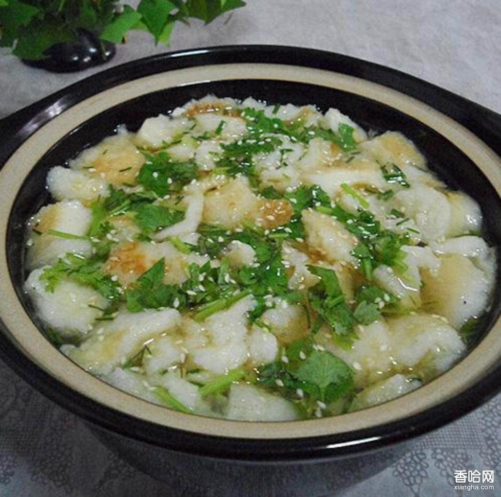 先把鮮嫩豆腐切成如燉肉大塊狀,用少許蔥油小炒幾下,然后添上開水,加精鹽佐料,坐火上熬一陣子,再買幾個三角“油斜”餅,每個用手扳成十來小塊、放鍋內(nèi)一起熬片刻,加上一些鮮蕪美,再澆幾滴香油盛在碗內(nèi),就可以上飯桌了。吃起來滑膩可口,食后回味無窮,尤其當作冬春早點最上口,既經(jīng)濟又實惠。
