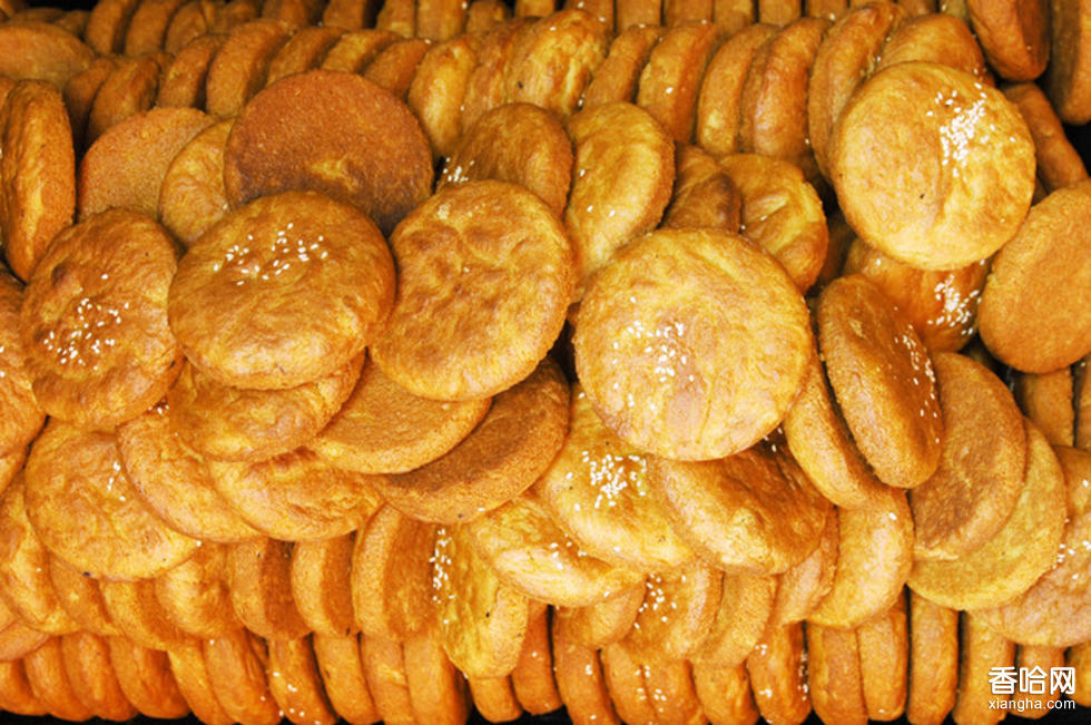 混糖月餅,是右玉相傳甚久的風味食品,其制作方法是:將白面粉、白糖(或紅糖)、葫油按10:4:4的比例配齊,再加適量發(fā)酵粉或蘇打,用五六成熱的水和成面,制成劑,搟成稍厚點的餅,然后上火烤。食之澗甜可口,是右玉人中秋節(jié)相互饋贈的佳品。