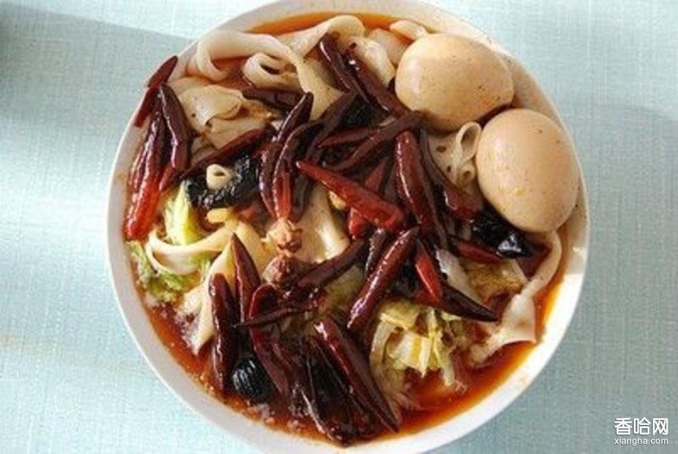 4、面粉30斤加水18斤搟也面索,再揉和均勻,用灰水7兩(如果灰水溶則少加,灰水淡則多加)撬和揉勻。案子上擦抹清油,將面搓成條,揪為重五兩的條,上面蓋上濕條布,然后根據(jù)每個(gè)人善食的愛好,分別拉成大寬、韭葉、二細(xì)、芥麥欏(三角條)一窩絲等形狀的面條下鍋,面熟后撈入碗內(nèi),將牛肉湯、蘿卜、肉丁、浮油適量,澆在面條上即成。并以每個(gè)人的口味加上適量的香萊、蒜苗、蔥花及辣子油。特點(diǎn)肉湯清沏鮮美、面條筋柔、入味,營養(yǎng)豐富實(shí)惠。